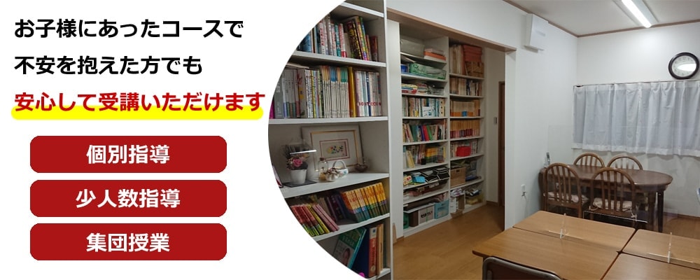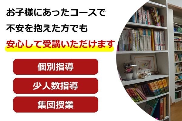 1対1で行います。教室に入れない、塾に行けるかな、など不安を抱えたお子様でも安心して受講していただけます。